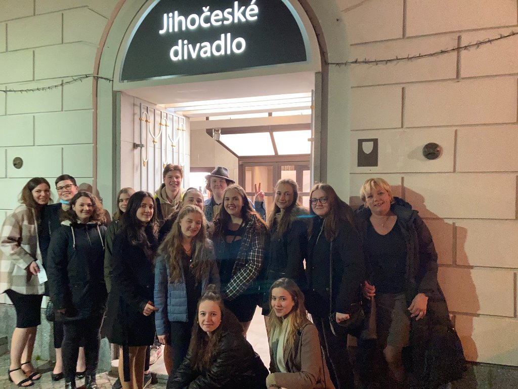 Pravidelně navštěvujeme s našimi žáky Jihočeské divadlo. V tomto školním roce jsme viděli představení Návrat krále Šumnavy, Caffé Croll a Zavolejte Jewesse.